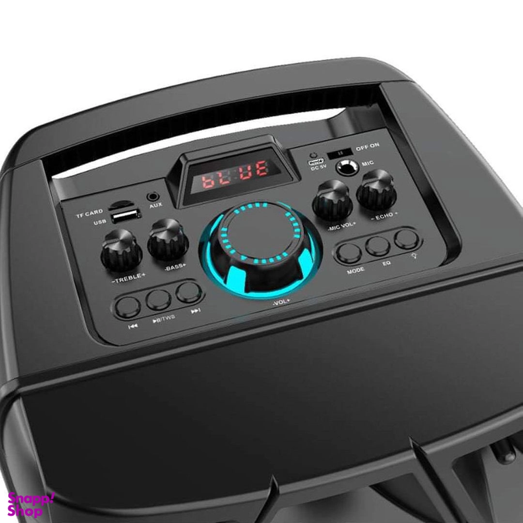 اسپیکر ZQS8210 یک اسپیکر بسیار زیبا از نظر طراحی بهمراه کیفیت ساخت بالا میباشد .این اسپیکر از نظر امکانات و کارایی کامل میباشد و هم فلش میخورد و بلوتوث و ایوایکس و میکروفون و ... در جلو اسپیکر یک پنل تمام ال ای دی قرار دارد که جلوه های محتلف نوری ایجاد میکند که در شب نمای بسیار زیبایی دارد . سایز باند های اسپیکر 8 اینچ میباشد که میتواند جوابگو جشن های 20-30 نفر را باشد . در بالای اسپیکر یک پنل حرفه ای برای تنظیمات صدا و نور اسپیکر قرار دارد