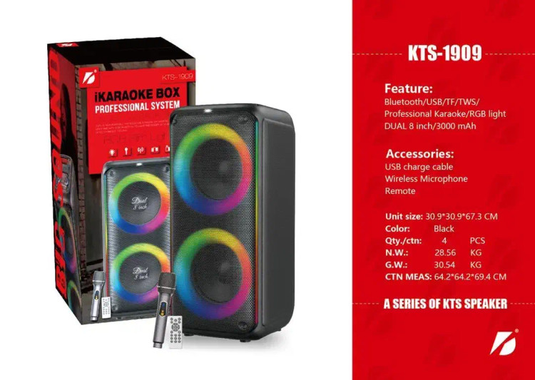 مجهز به کلیدهای فیزیکی تعبیه شده جهت مدیریت موسیقی، تنظیم ولوم، نورپردازی و …، اقلام همراه شامل میکروفون، ریموت کنترل، کابل شارژ سوزنی